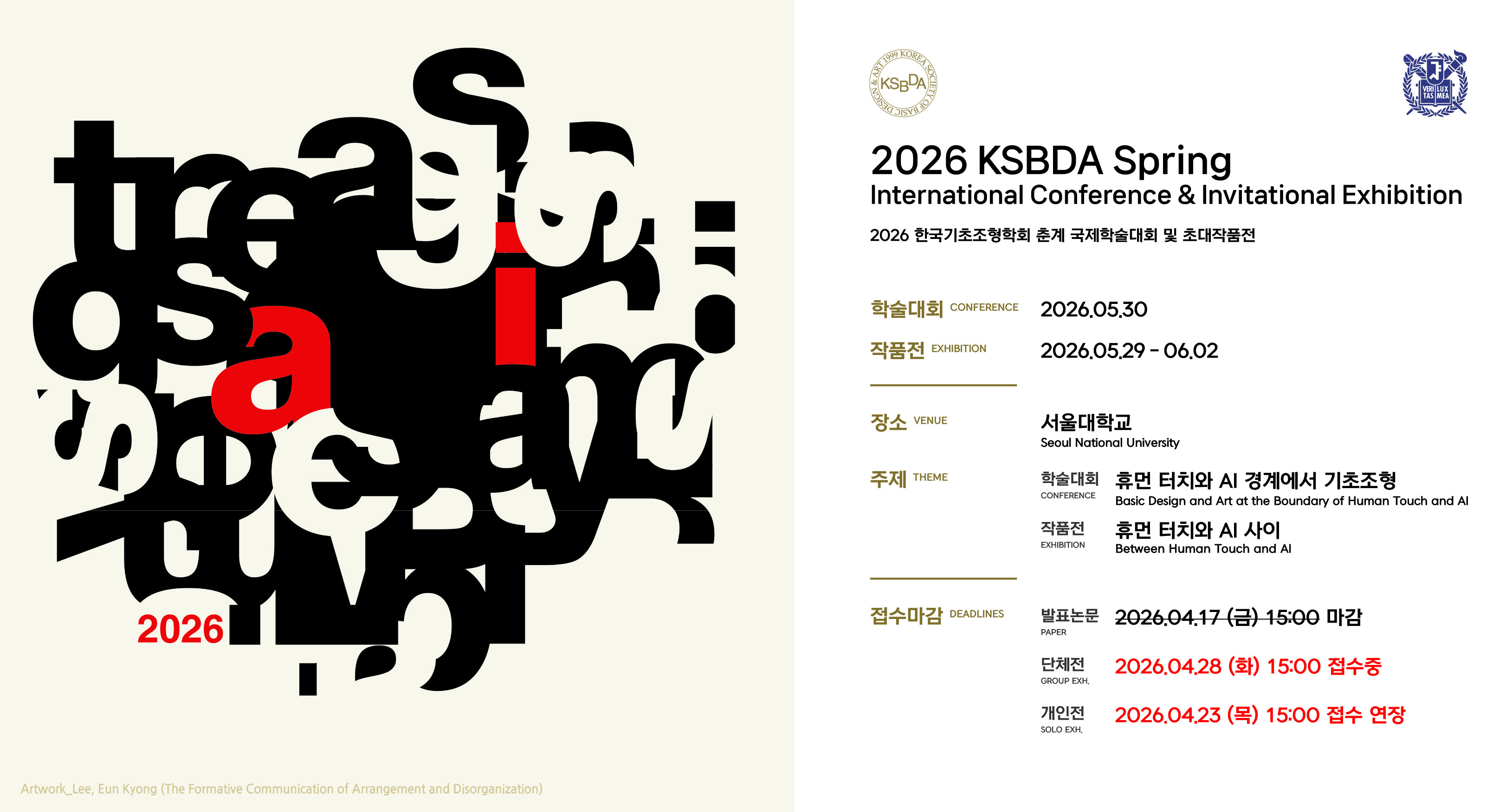 Journal of Basic Design & Art Vol.27 No.3 #135 June 2026| 접수기간 Receipt | 2026.03.01 ~ 2026.04.10 15:00 |