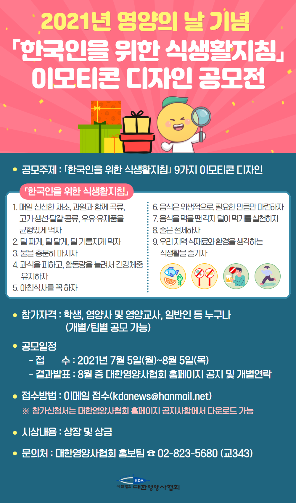 2021년 영양의 날 기념「한국인을 위한 식생활지침」 이모티콘 디자인 공모전 안내문 |
