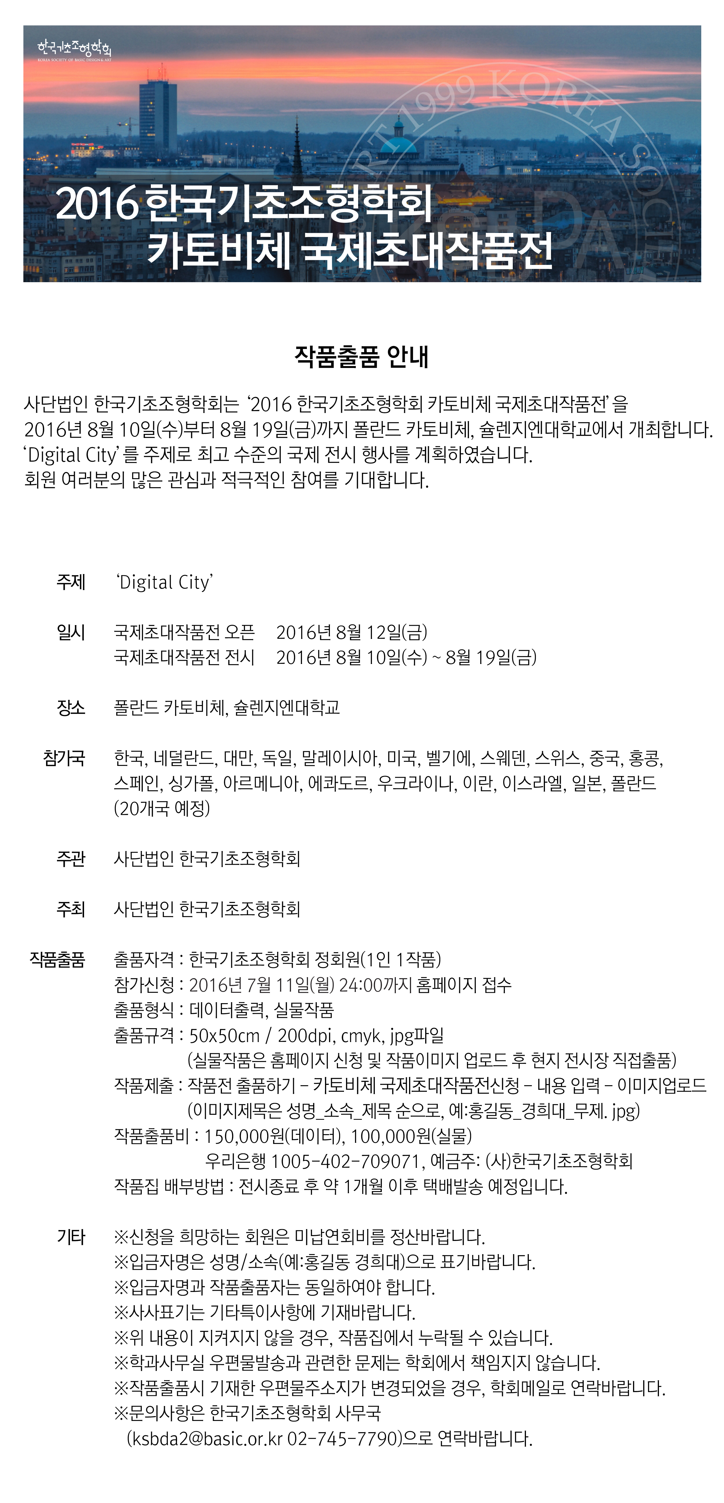 2016 한국기초조형학회 카토비체 국제초대작품전 개최 안내