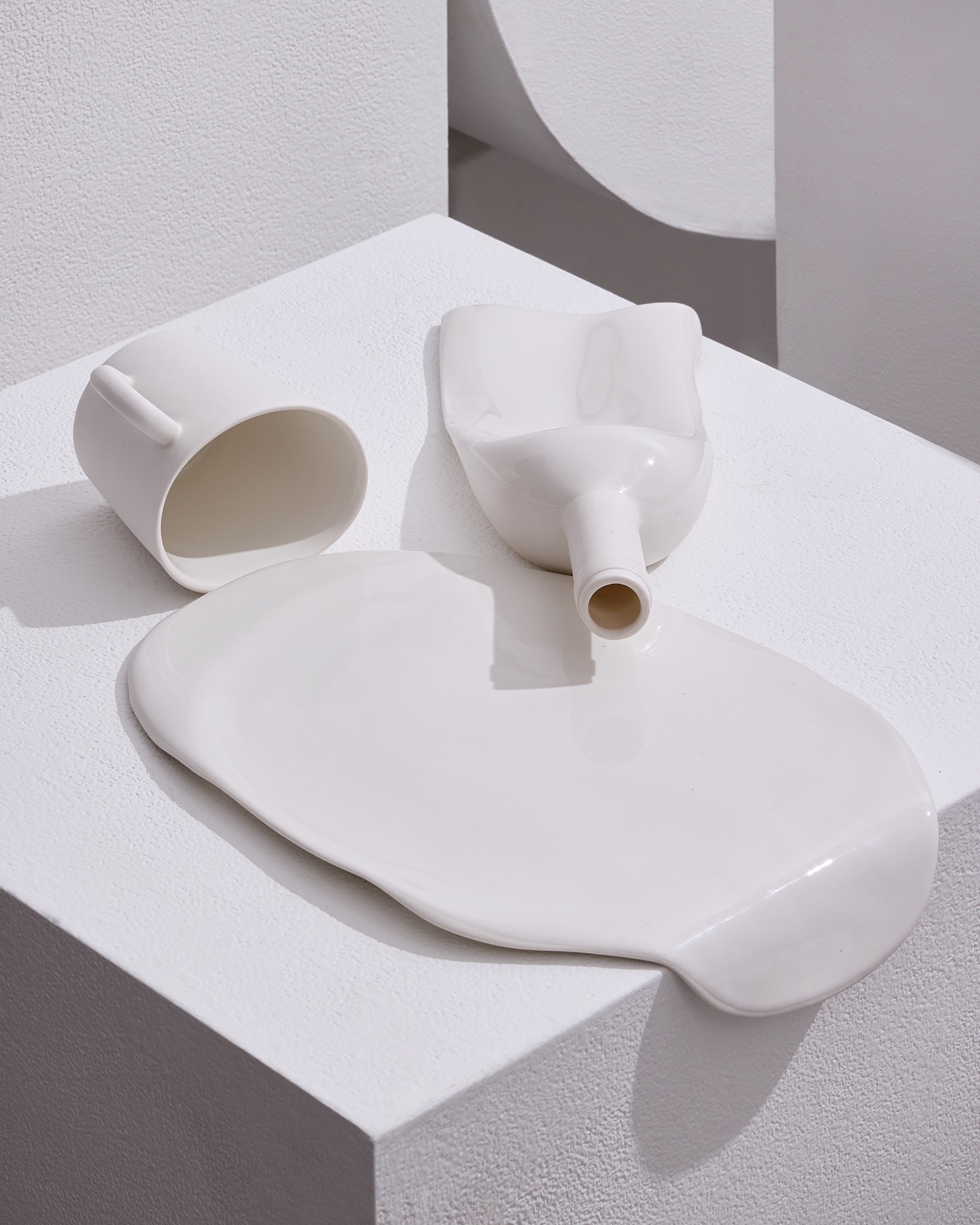 김혜림의 「Drunken Ceramics」는 술에 취한 듯 흔들리고 흘러내린 조형을 통해