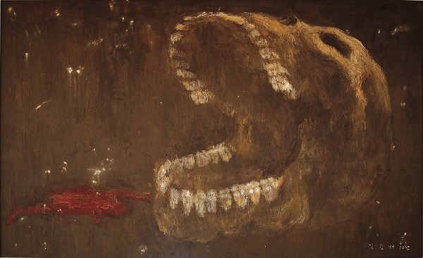 〈학살〉은 정치적 폭력이 어떻게 체계로 작동했는가를 구조적으로 고정한다. 〈뼈노래〉는 폭력의 잔여만을 남긴다. 설명조차 거부하는 두개골은 말할 수 없음 그 자체다. 발성할 수 없는 것이 발성하는 역설. 침묵이 형식이 되는 순간이다.