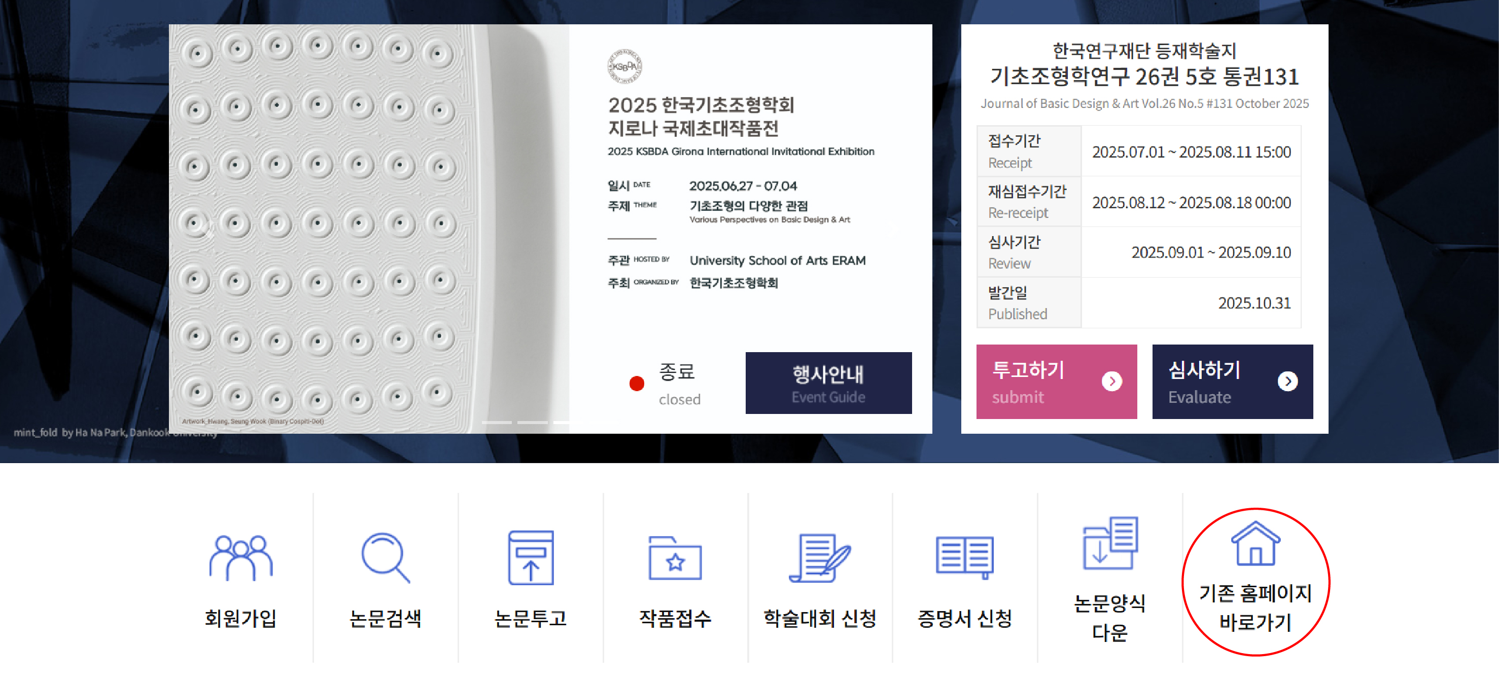학회 홈페이지에 접속하신 후, '기존 홈페이지 바로가기'를 클릭하시고 로그인하신 뒤, 증명서를 신청해주시기 바랍니다. (※ 아래 이미지 참고)