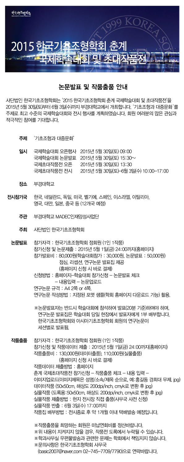 2015 한국기초조형학회 춘계 국제학술대회 및 초대작품전 개최 안내