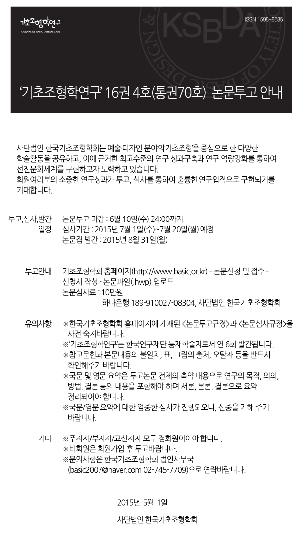 KSBDA '기초조형학연구' 16권 4호 (통권70호) 논문투고 안내