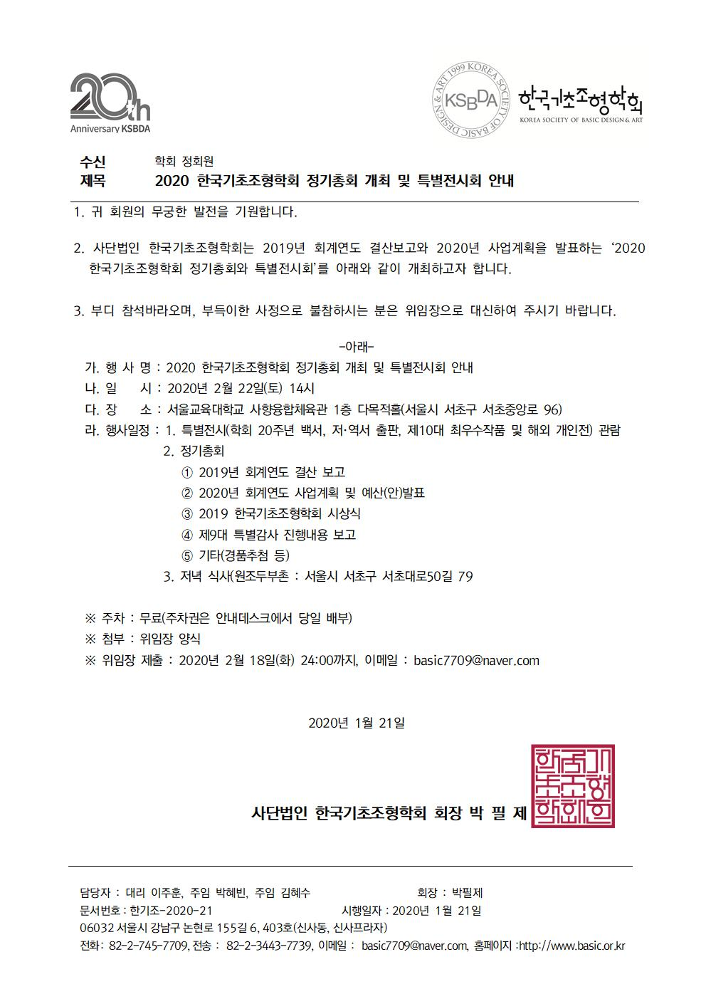 2020 한국기초조형학회 정기총회 개최 및 특별전시회 안내