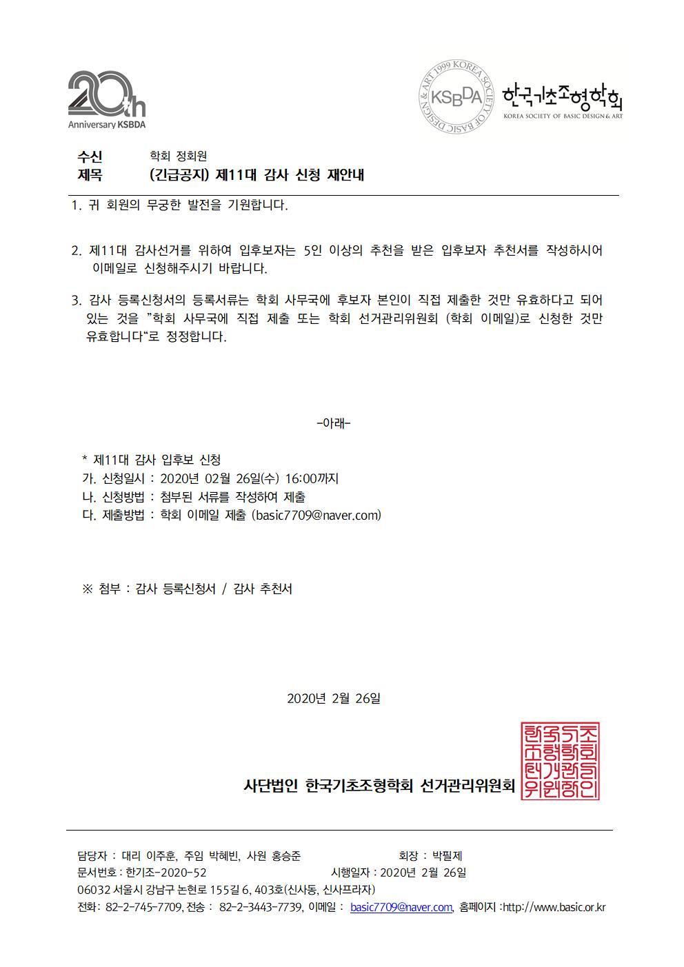 (긴급공지) 제12대 회장 후보자 소개 및 제11대 감사 신청 안내(첨부파일 확인)