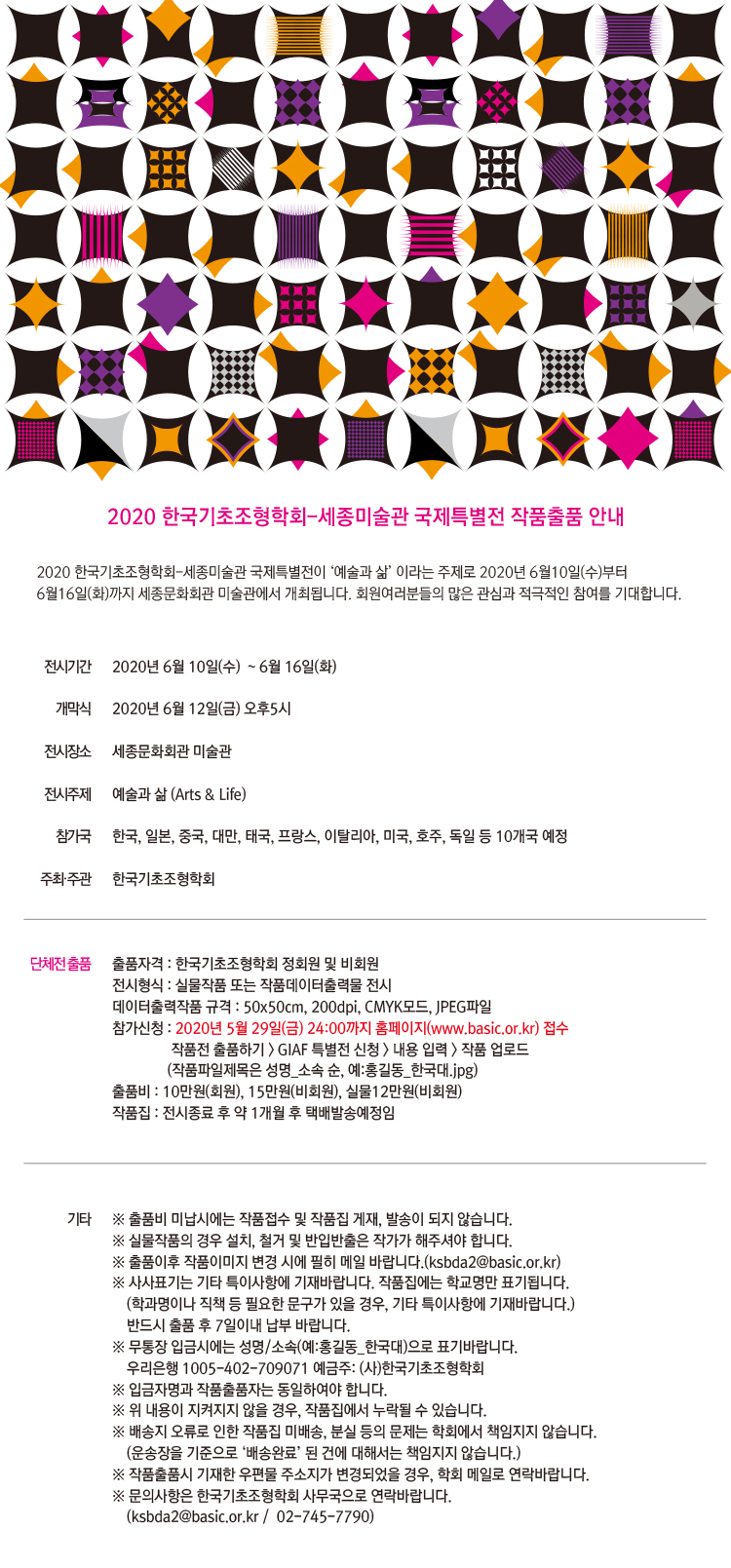 2020 한국기초조형학회 세종미술관 국제특별전 안내(첨부)