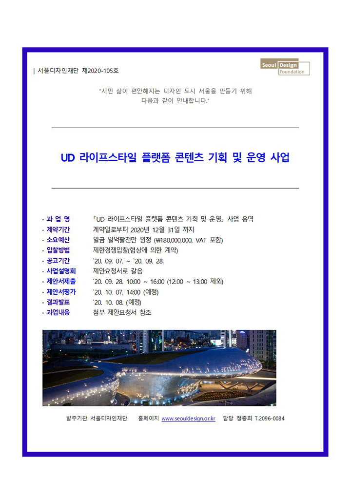서울디자인재단 UD 라이프스타일 플랫폼 기획 및 운영 공고 안내