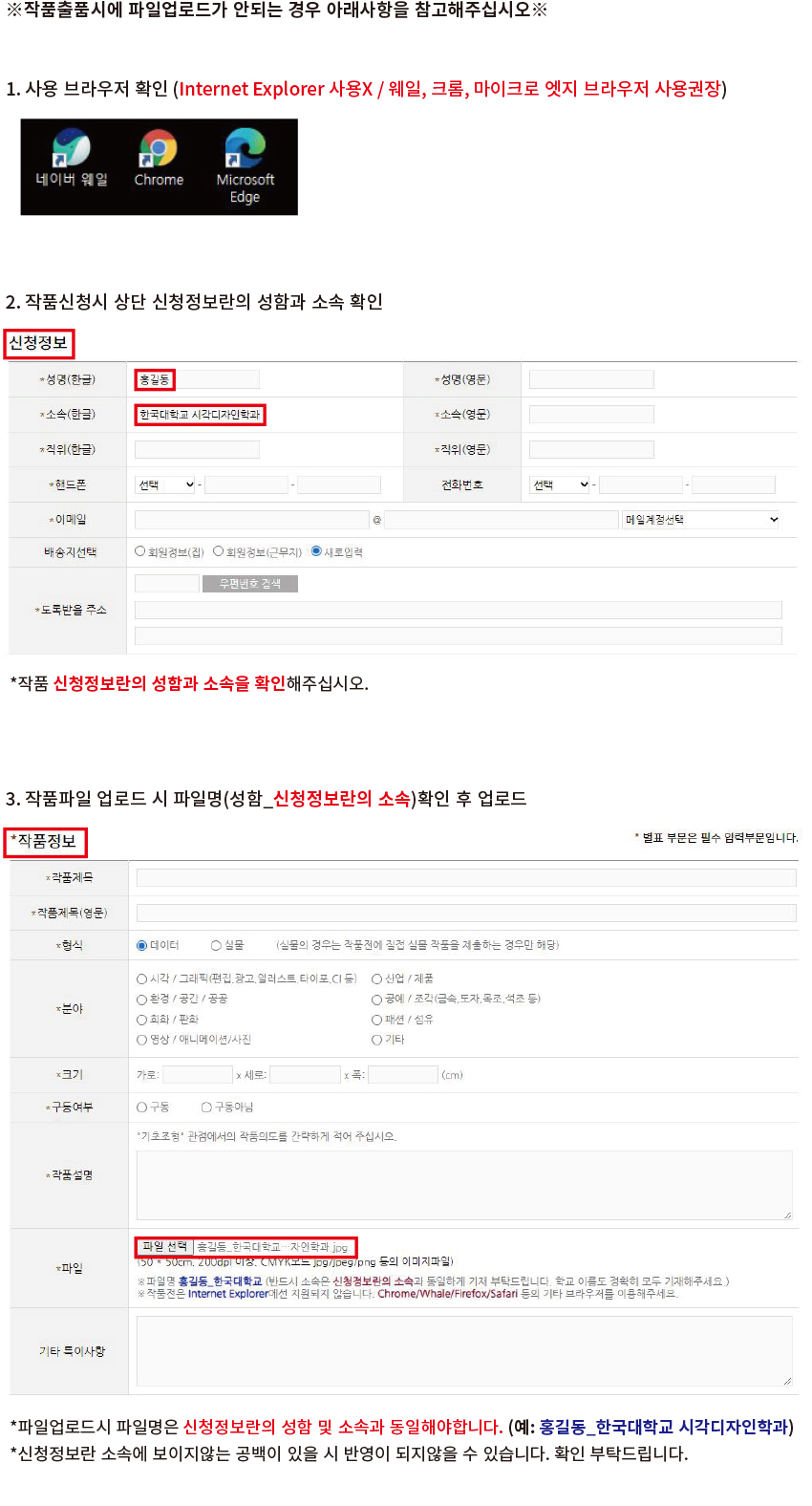 ※작품출품시 파일업로드가 안되는 경우 참고사항 안내※