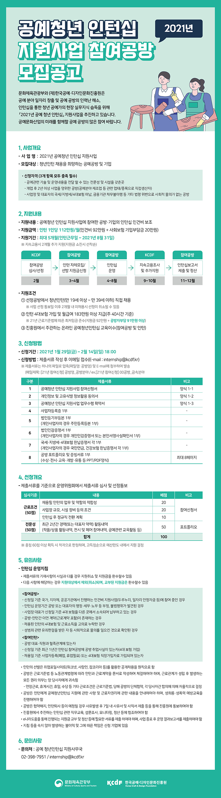 2021 공예청년 인턴십 지원사업 참여공방 모집공고