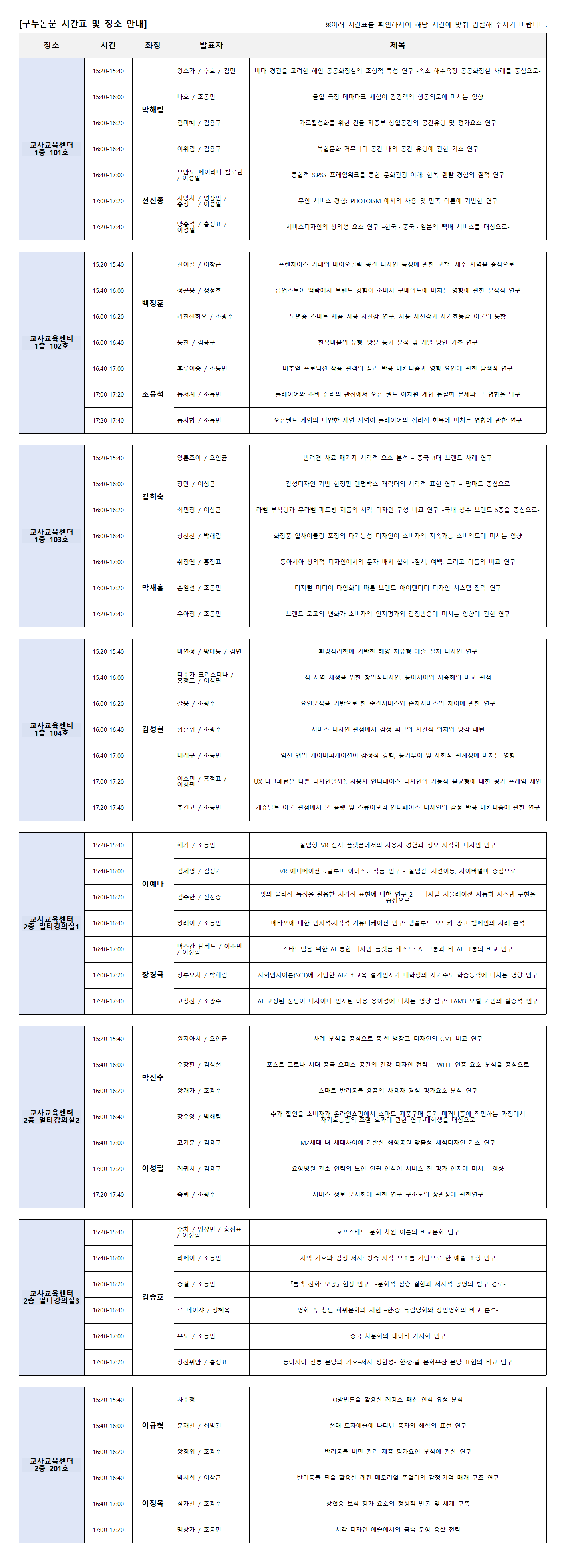 3) 아래 기재된 시간표를 참고하셔서 발표시간에 맞게 입실하여 주시기 바랍니다.