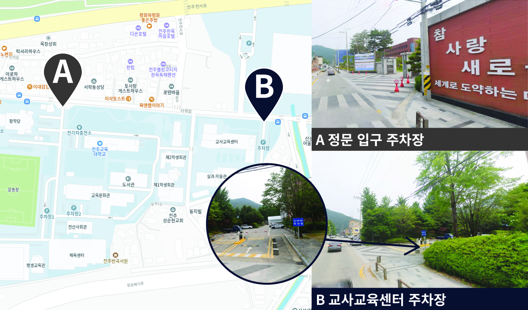 가능하시면 B 교사교육센터 주차장을 이용해주시기 바랍니다.