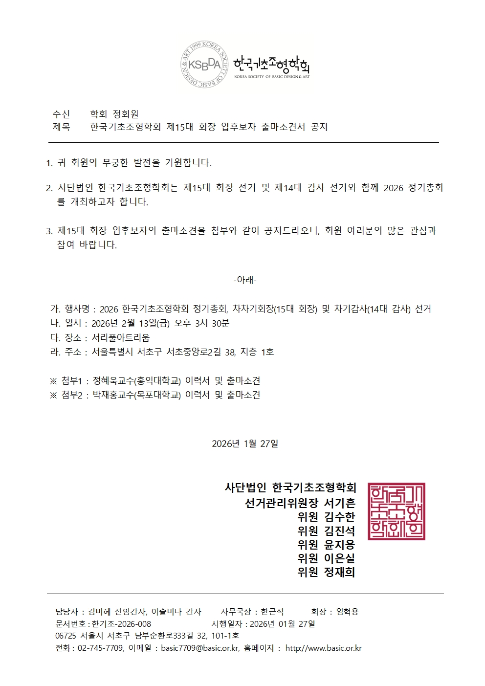 2026 한국기초조형학회 정기총회 개최 안내