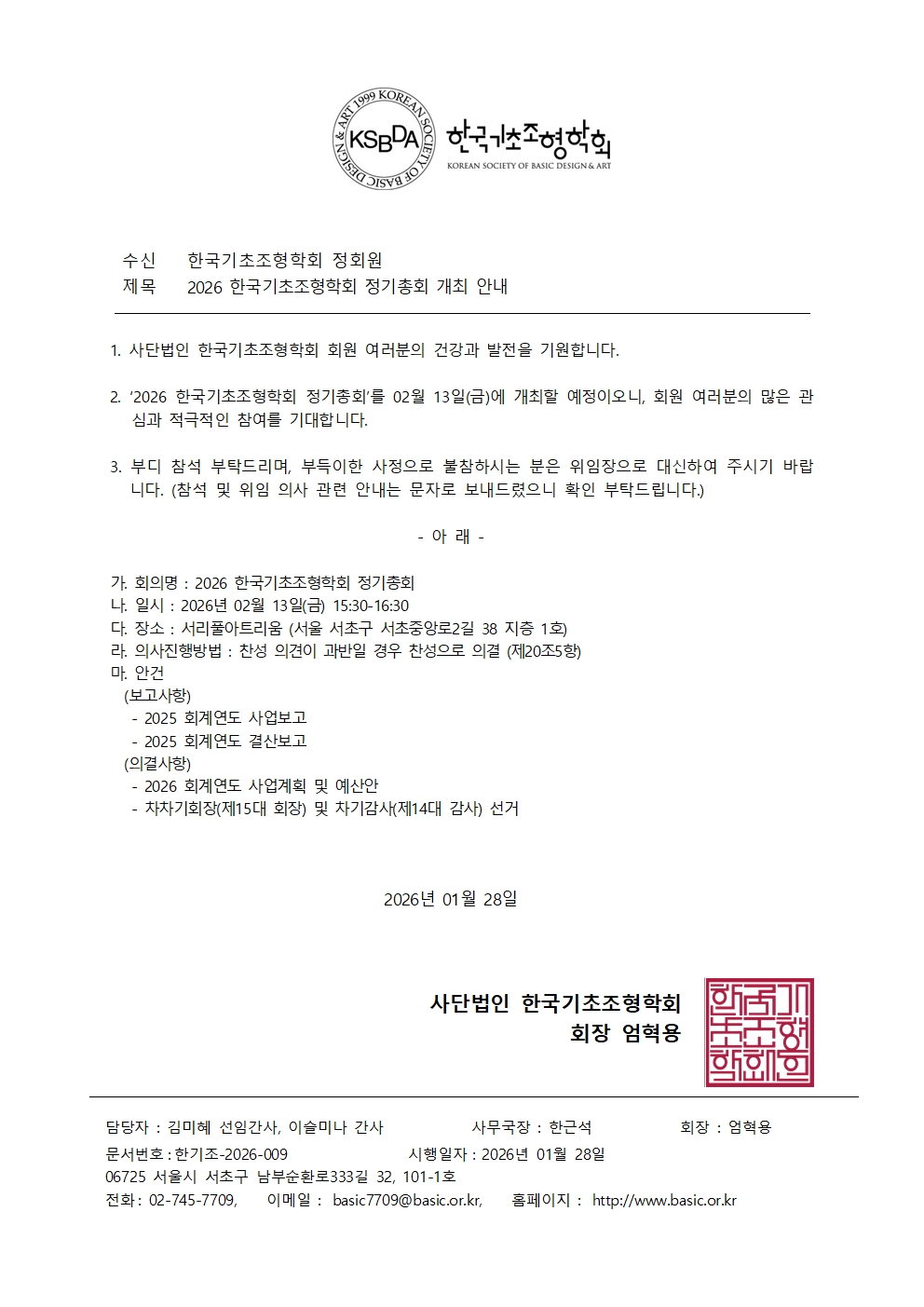 2026 한국기초조형학회 정기총회 개최 안내