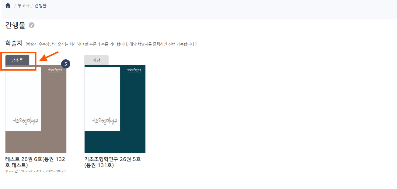 접수중인 논문은 간행물 표지 위에 '접수중'이라고 표기되어 있습니다.