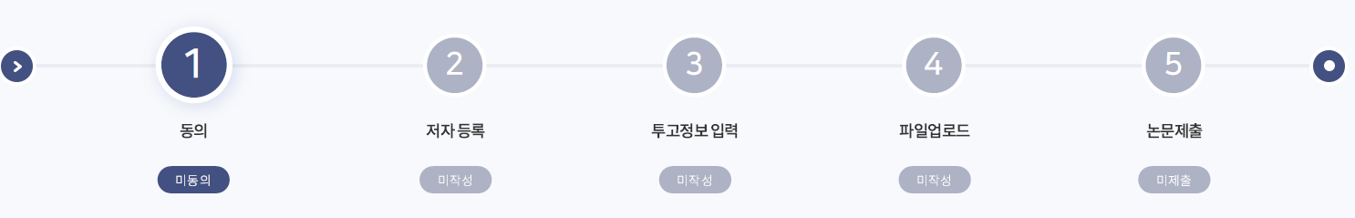 투고하기 버튼을 클릭하면 아래와 같이 논문 투고 과정이 나타납니다.