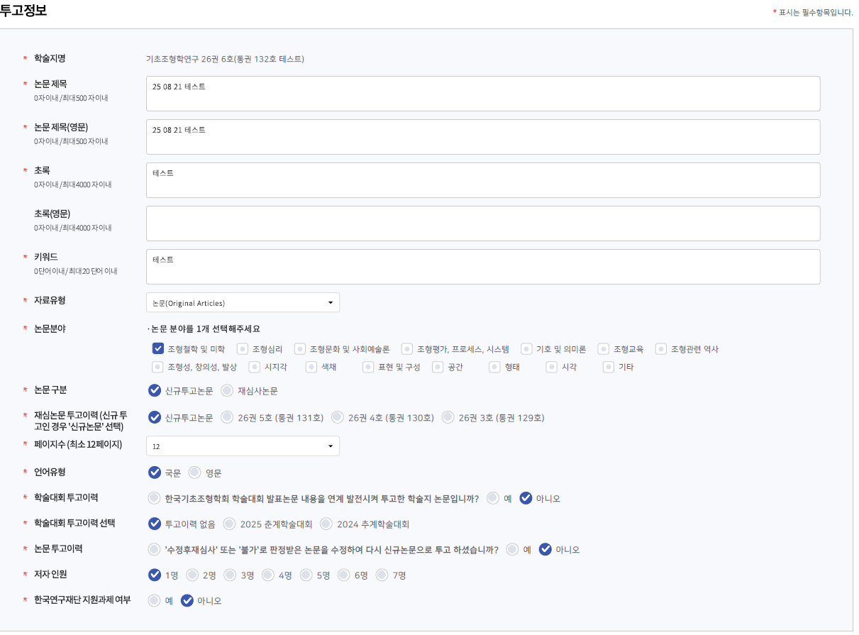 설정된 항목에 따라 투고정보를 입력해주세요.
