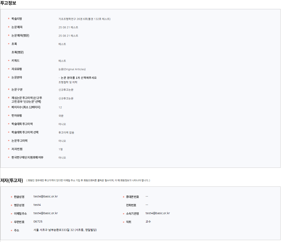 2. 논문 투고정보와 저자 정보를 확인합니다.