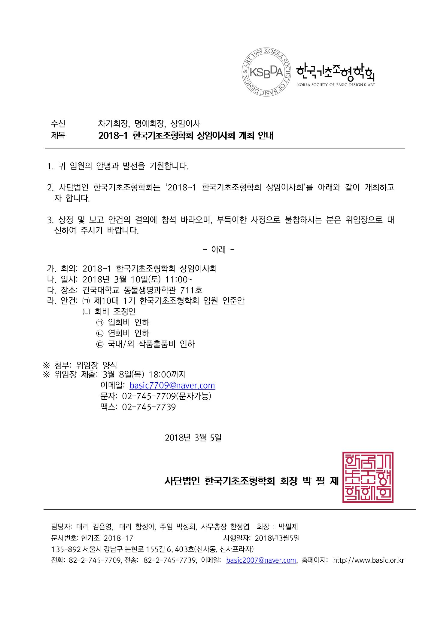 KSBDA 2018-1 한국기초조형학회 상임이사회 개최 안내