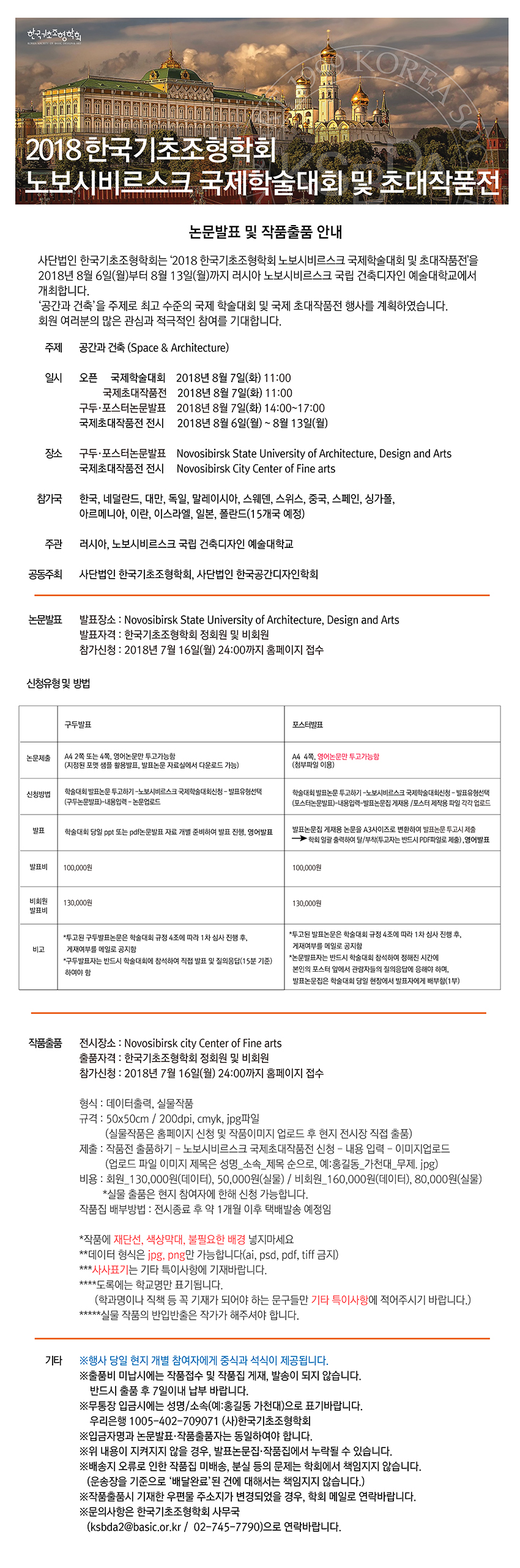 2018 한국기초조형학회 노보시비르스크 국제학술대회 및 초대작품전 개최안내