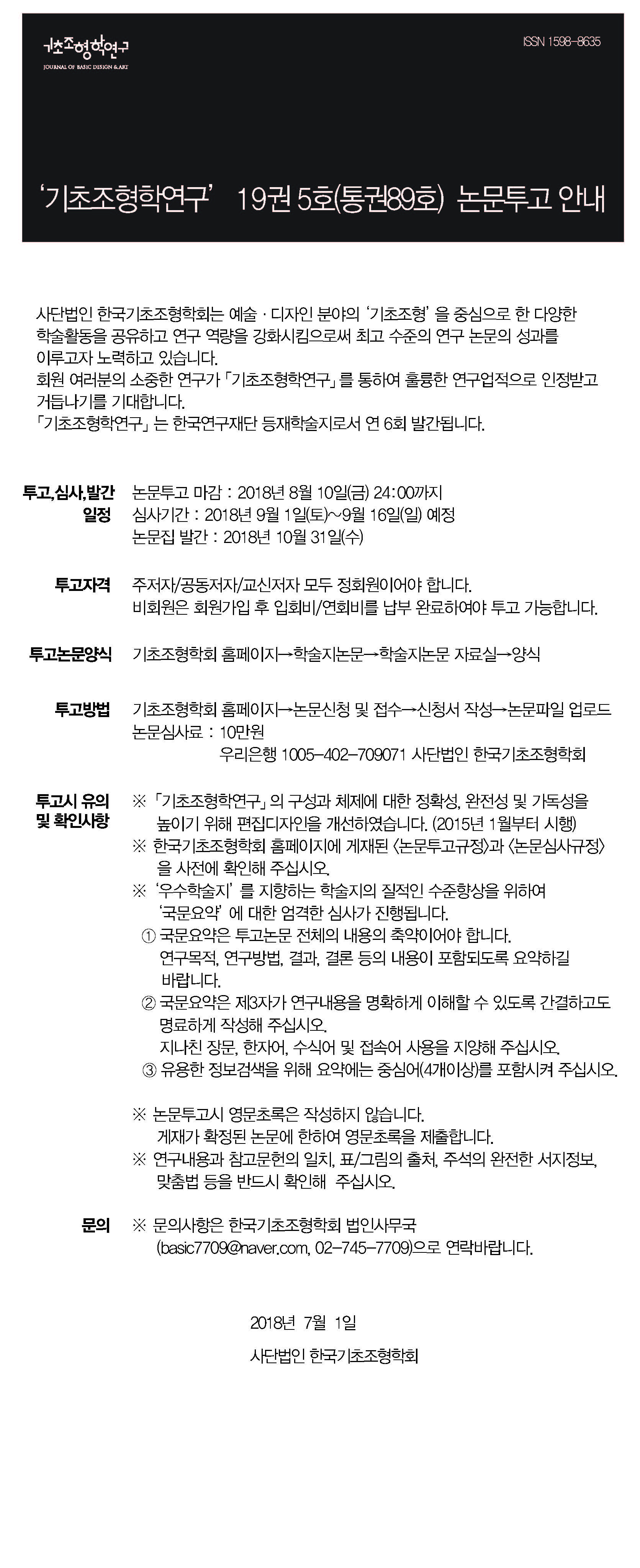 KSBDA '기초조형학연구' 19권 5호(통권89호) 논문투고안내