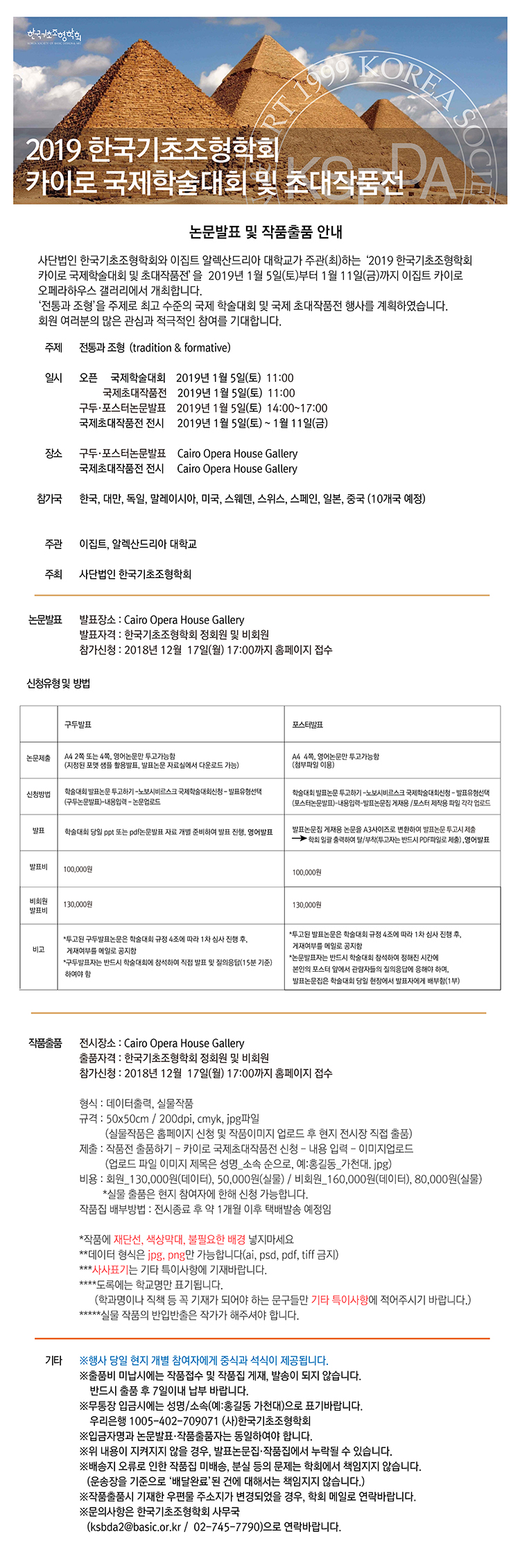 2019 한국기초조형학회 카이로 국제학술대회 및 초대작품전(2019.01.05.~01.11.)