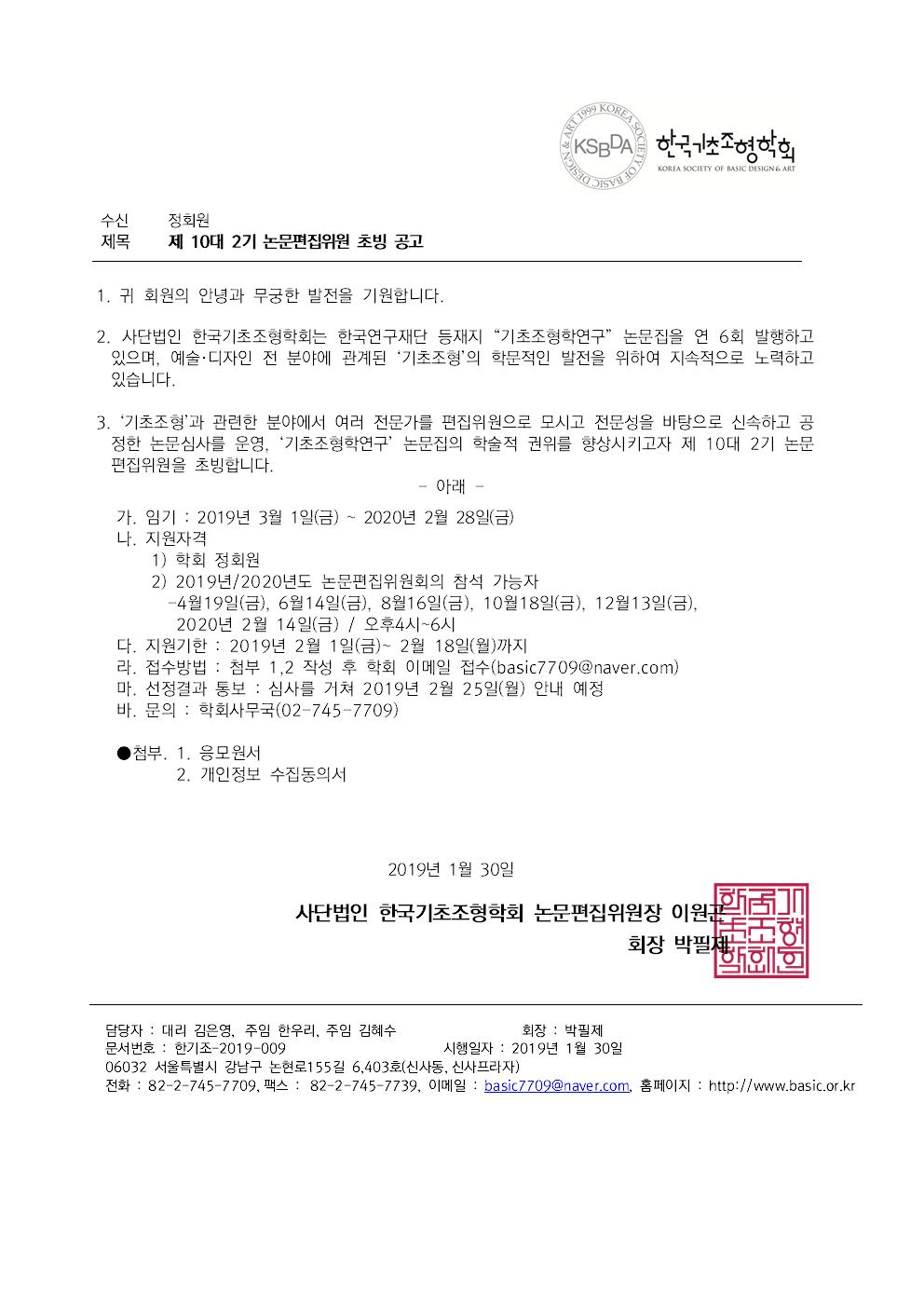 제 10대 2기 논문편집위원 초빙 공고