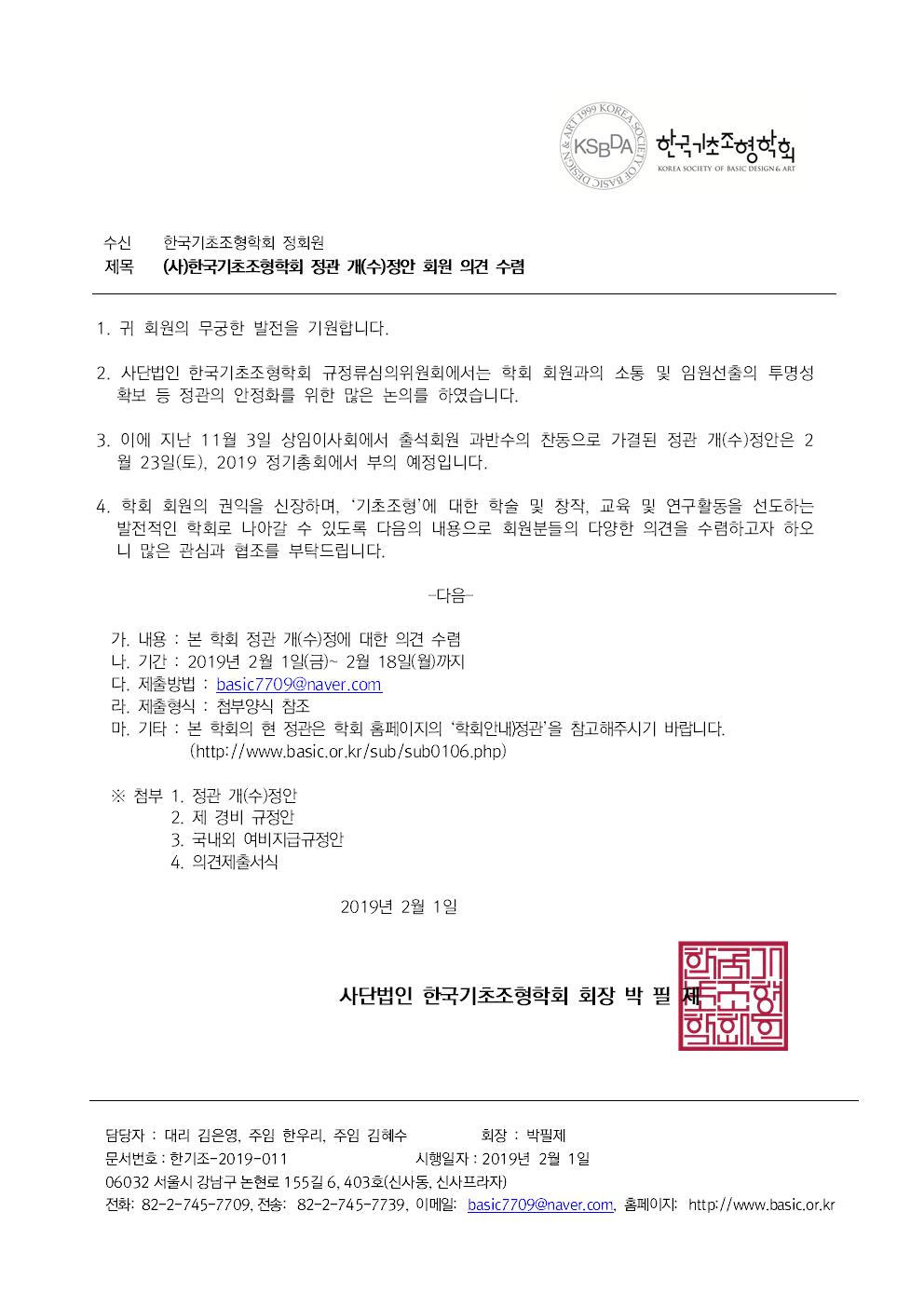 KSBDA (사)한국기초조형학회 정관 개(수)정안 회원 의견 수렴