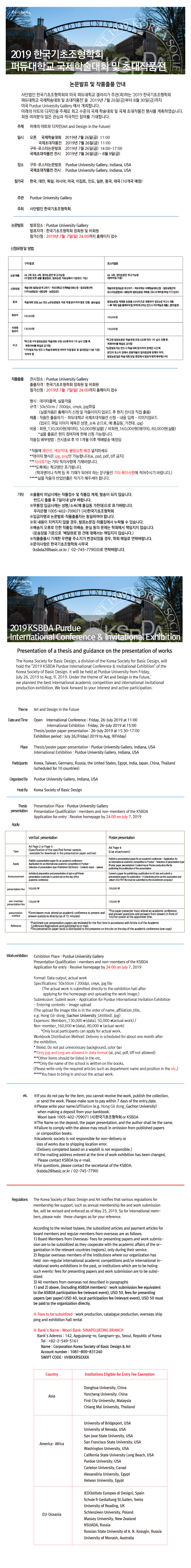 2019 한국기초조형학회 퍼듀대학교 국제학술대회 및 초대작품전 개최 안내