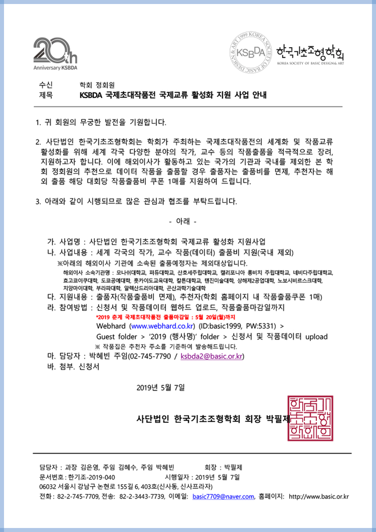 KSBDA 한국기초조형학회 국제교류 활성화 지원사업 안내