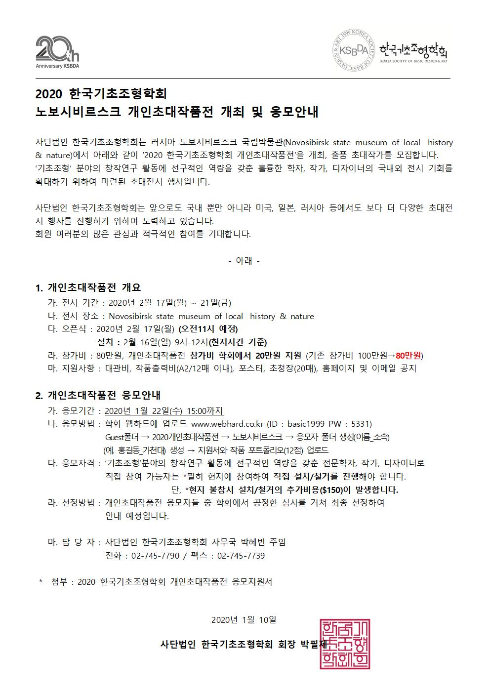 2020 노보시비르스크 개인초대작품전 개최 및 응모안내