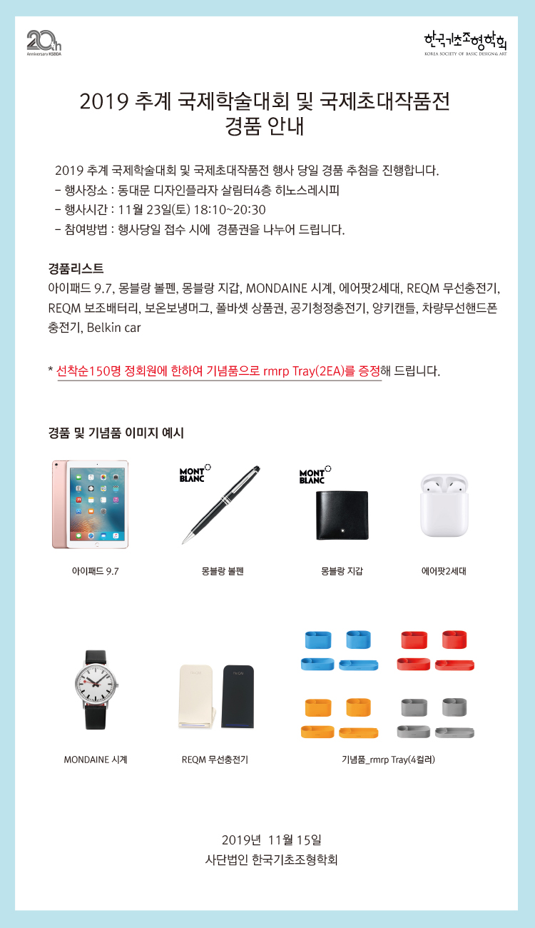 2019 추계 국제학술대회 및 국제초대작품전 경품 안내