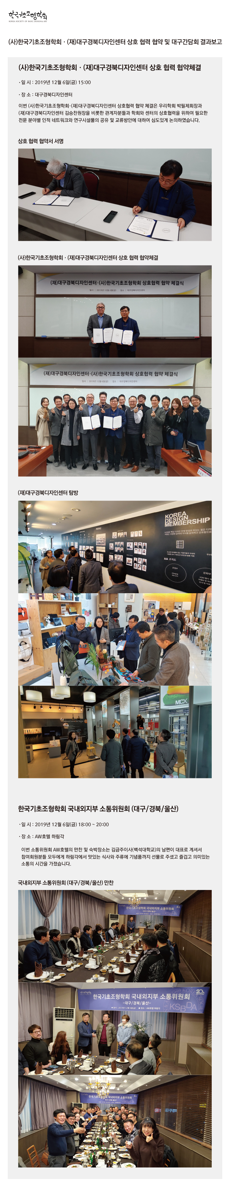 (사)한국기초조형학회 · (재)대구경북디자인센터 상호 협력 협약 및 대구간담회 결과보고