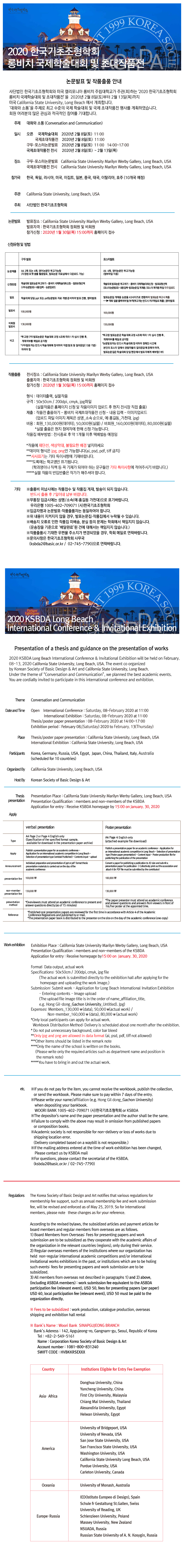 2020 한국기초조형학회 롱비치 국제학술대회 및 국제초대작품전 안내