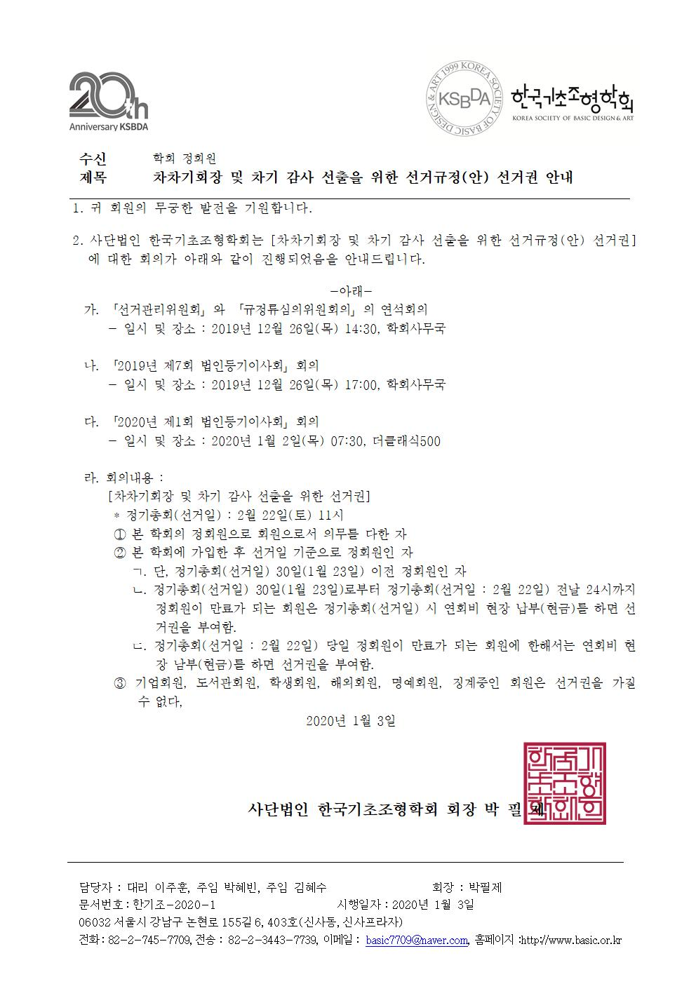 차차기 회장 및 차기 감사 선출을 위한 선거규정(안) 선거권 안내